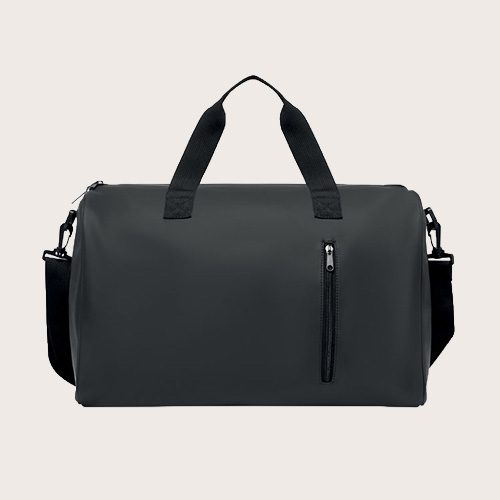 Bolsa de lona en suave PU con refuerzo inferior de espuma. Un compartimento principal, bolsillo frontal con cremallera. Forro de poliéster RPET 210D. 2 asas y una correa bandolera ajustable y desmontable.