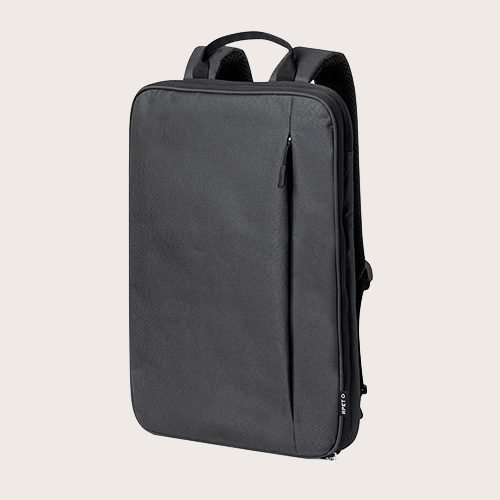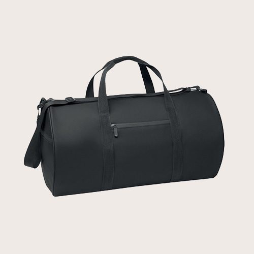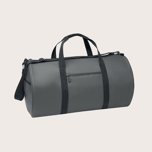 Bolsa de viaje de poliéster RPET 600D con revestimiento de PU. Bolsillo frontal con cremallera. Forro interior de poliéster RPET 210D. 1 compartimento lateral con cremallera / 1 compartimento lateral de malla. Bolsillo interior con cremallera.