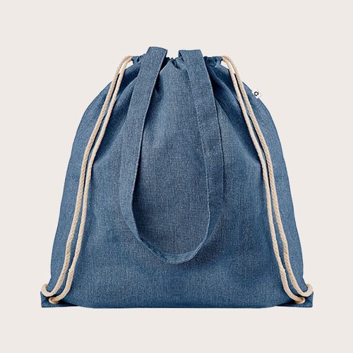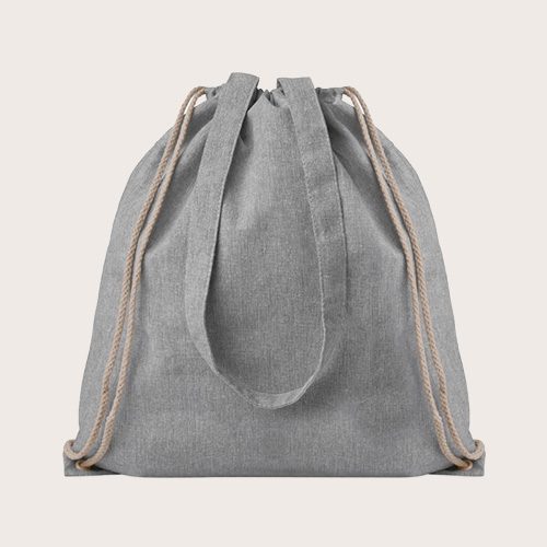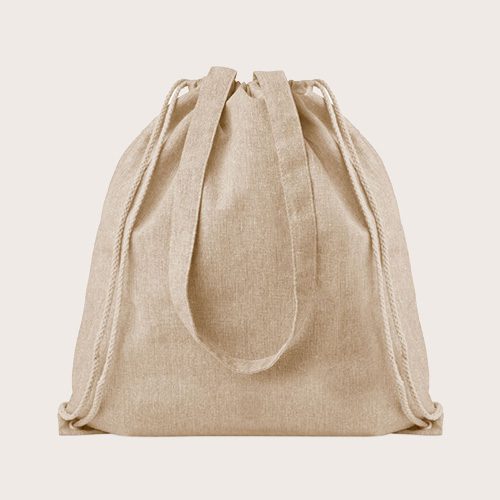 Bolsa de la compra jaspeada de algodón y poliéster reciclado con cuerdas y asas largas (20% / 80%). Este artículo puede encogerse después de imprimir.