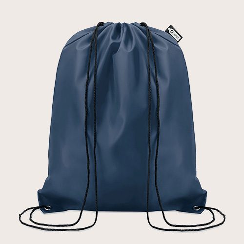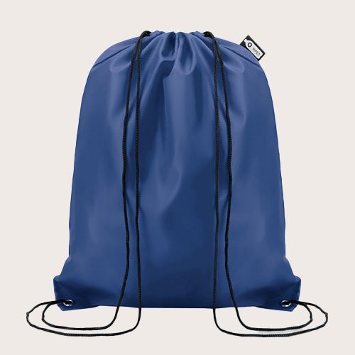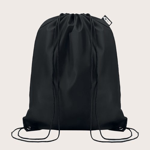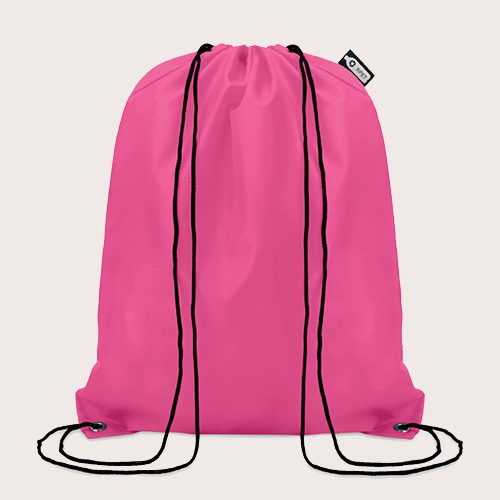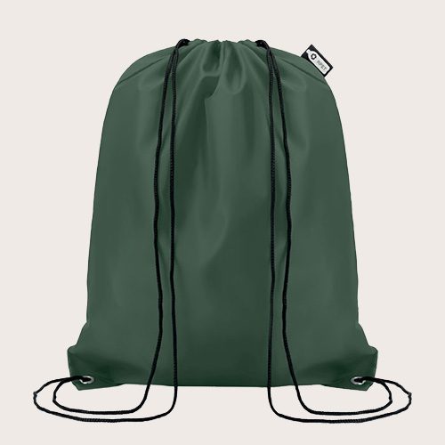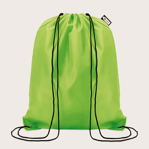 Bolsa con cordón de RPET 190T con tiras de PP. Material respetuoso con el medio ambiente, elaborado a partir de botellas de plástico recicladas.