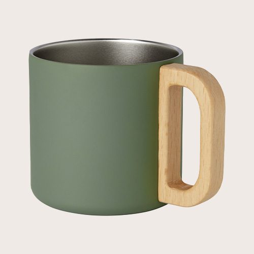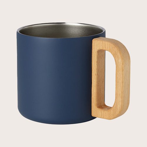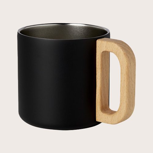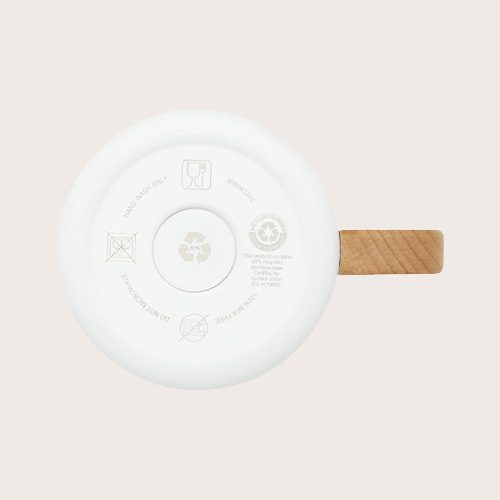 La taza está hecha de acero inoxidable reciclado con certificado RCS y el asa es de madera de haya de origen responsable. El aislamiento de cobre al vacío de la taza ayuda a mantener las bebidas a su temperatura ideal durante mucho tiempo. Esta taza es una gran alternativa a las tazas tradicionales, ya que está diseñada para evitar la transferencia de calor al exterior de la taza. Testada y homologada según la legislación alemana sobre seguridad alimentaria (LFGB) y sobre contenido de ftalatos según REACH.