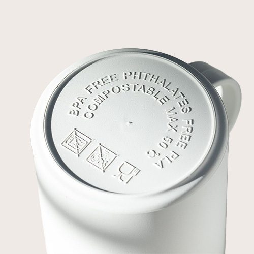 Taza de PLA 100% compostable. 350ml de capacidad, de acabado sólido y libre de BPA.
