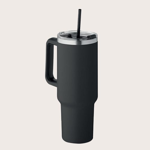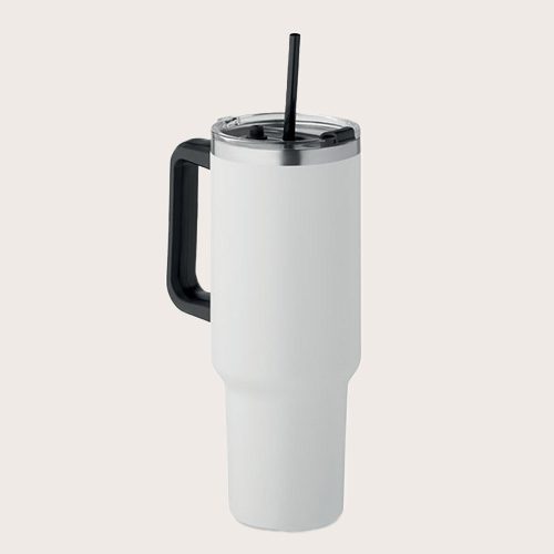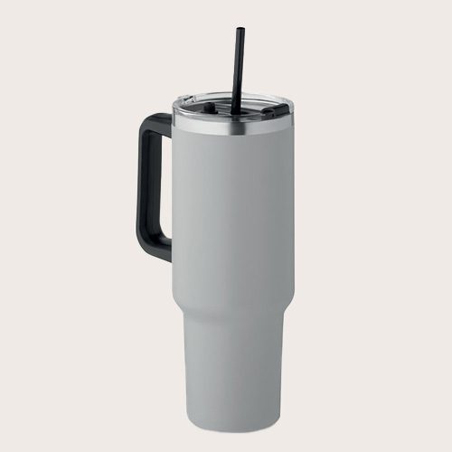 Vaso de acero inoxidable reciclado de doble pared, con tapa y pajita de polietileno. (90% de acero inoxidable reciclado y 10% de acero inoxidable).