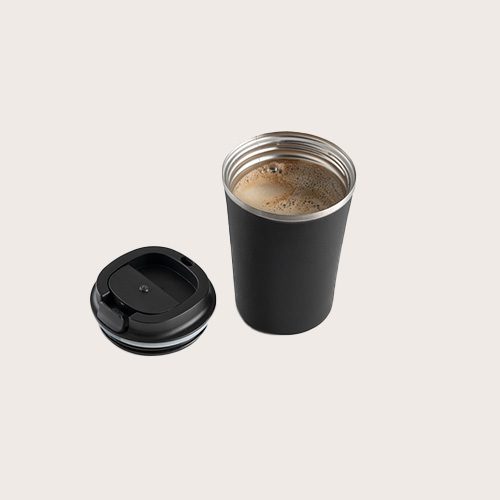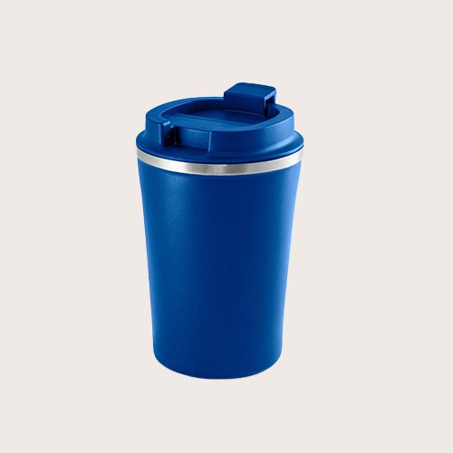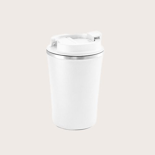 Vaso de viaje de PP y acero inoxidable aislado al vacío de doble pared. Acabado mate y pintura en polvo, lo que le otorga mayor durabilidad y resistencia. Suministrado en una caja de regalo.