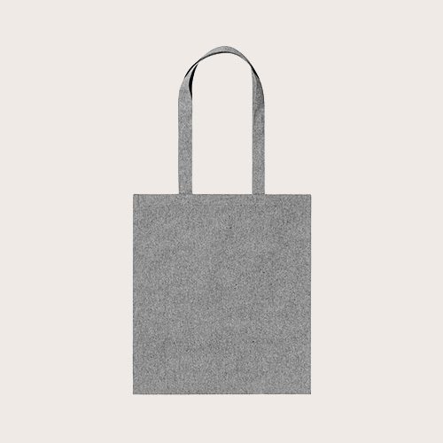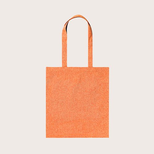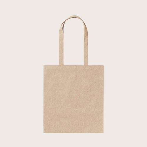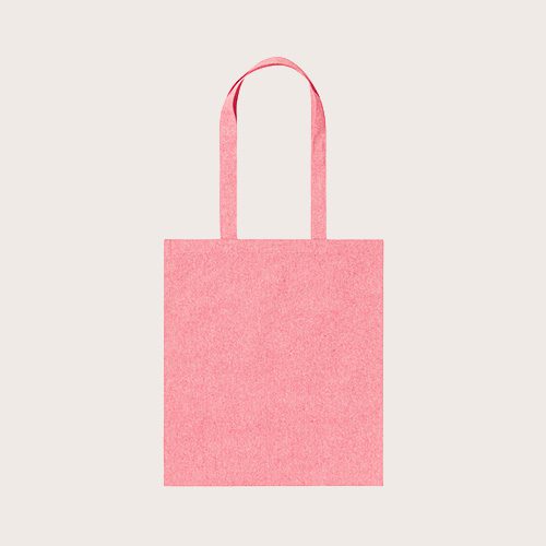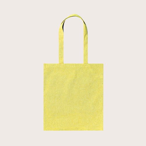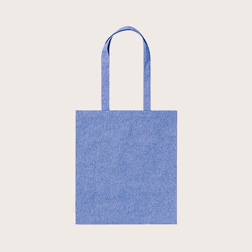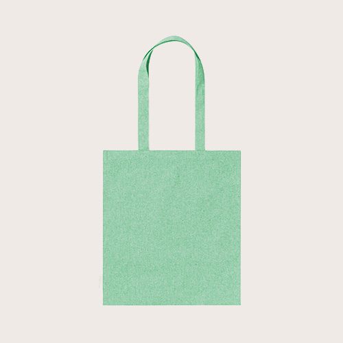 Bolsa fabricada principalmente en algodón reciclado de 140 g/m². Certificación GRS (Global Recycled Standard / Estándar de Reciclaje Global), que garantiza el origen reciclado del material usado para fabricar el producto. De acabado cosido, con asas largas reforzadas de 70 cm y disponible en variada gama de colores. Resistencia hasta 8 kg, incluida etiqueta con distintivo de algodón reciclado.