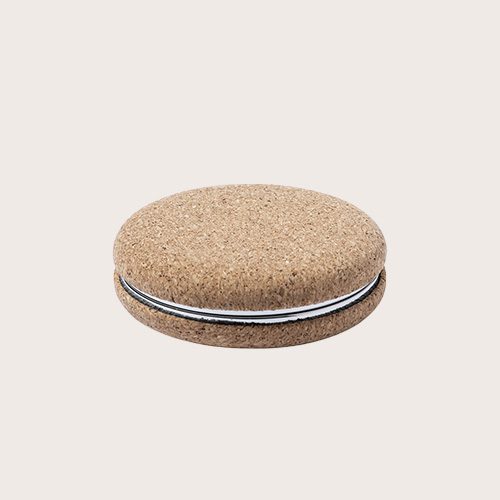 Espejo plegable en combinación de materiales corcho natural y metal cromado. Dos espejos interiores: 1X / 2X. Presentado en atractiva caja individual de diseño eco.