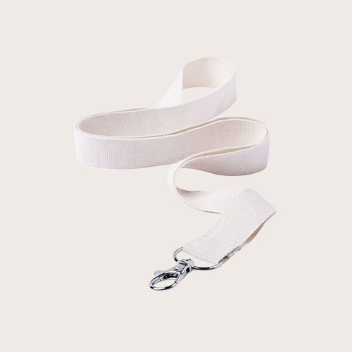 Lanyard de algodón. En color crudo y con mosquetón metálico.