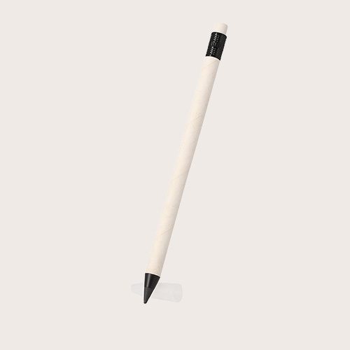 Lápiz eterno fabricado con cartones de leche reciclados, presentado en funda de papel con semillas. Reutilizable y con escritura infinita. Incluye goma de borrar en la parte superior del lápiz y capucha de protección. De color blanco, con detalles en negro. Con distintivo de cartón de leche reciclado en el cuerpo. La funda incluye semillas de petunia, convirtiéndolo en papel plantable al final de su vida útil. Incluye instrucciones de plantado en la cubierta trasera.