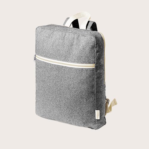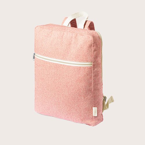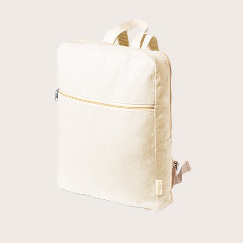 Mochila fabricada principalmente en algodón reciclado GRS de 275 g/m². Compartimento principal y bolsillo frontal con cierre de cremallera. Con asa de transporte y cintas para hombros ajustables a juego. Disponible en variada gama de colores y con distintivo algodón reciclado en etiqueta exterior. Disponible certificación GRS (Global Recycled Standard / Estándar de Reciclaje Global), que garantiza el origen reciclado del material usado para fabricar el producto.