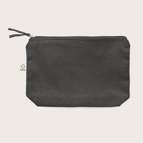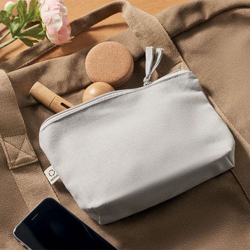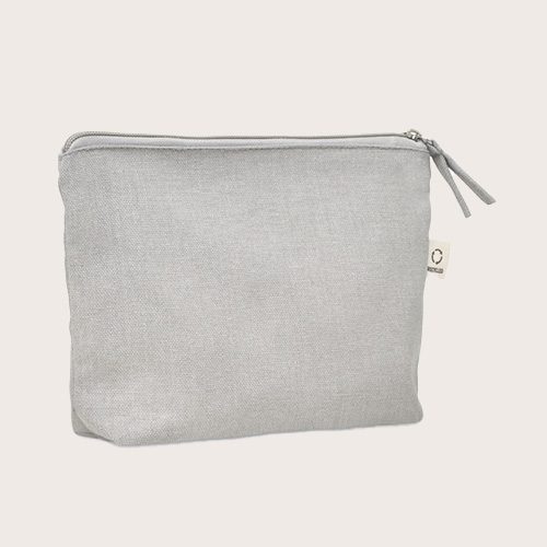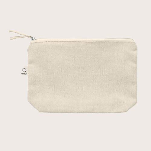 Neceser para cosméticos y/o accesorios en tejido reciclado (70% algodón reciclado y 30% poliéster RPET) con tirador de cremallera a juego. Este artículo puede encogerse después de la impresión.