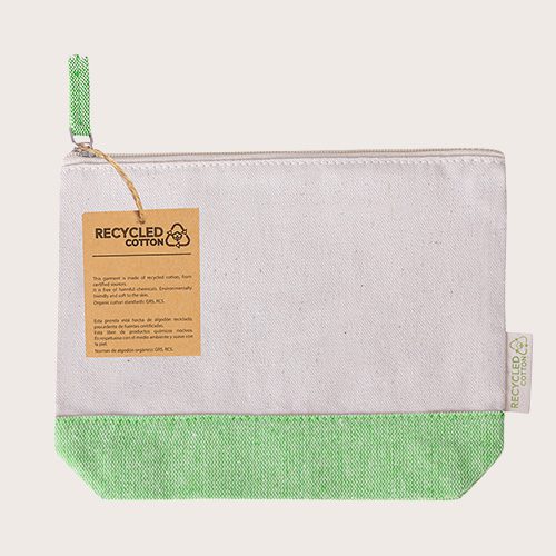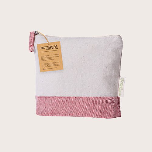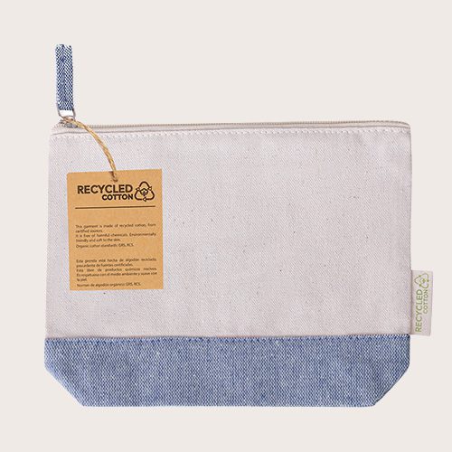 Neceser elaborado en algodón reciclado. Compartimento principal de cierre de cremallera y tirador de color a juego con la base. Disponible en variada gama de vivos colores. Con logotipo algodón reciclado en etiqueta.