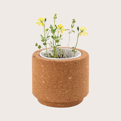 Maceta de corcho que incluye vaso de cartón, pastilla de tierra y semillas. Cuentan con la garantía de procedencia de la Unión Europea. Semillas: flores silvestres.