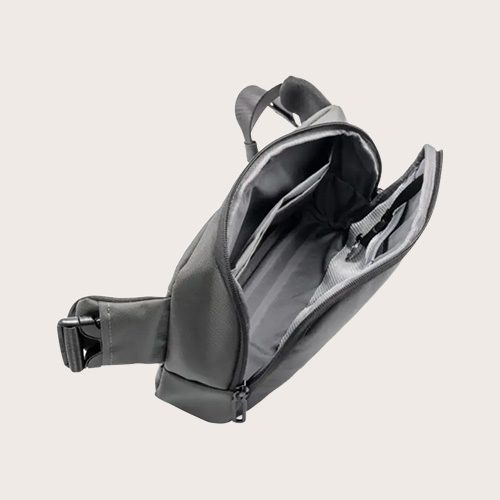 Fabricada de tejido balístico reciclado 800D resistente al agua y a las manchas y con contrastes de cuero vegano, está hecha para trabajar, viajar y mucho más. La cinta regulable y la cremallera de SBS ofrecen comodidad y seguridad, y la hebilla lateral añade un detalle refinado. En el interior, un compartimento de almacenamiento inteligente con acolchado a prueba de golpes y un llavero integrado extraíble mantienen los artículos esenciales seguros y organizados, lo que convierte a Edge en un compañero fiable para todos los días.