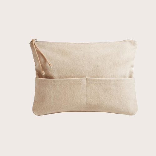 El neceser «Zipzip» es una forma elegante de mantener organizados los objetos de uso diario. Un cierre de cremallera seguro mantiene tus pertenencias a salvo, mientras que dos bolsillos delanteros pequeños (14 × 10,5 cm) proporcionan un acceso rápido a los objetos de uso diario. Fabricada con algodón orgánico 100 % (420 g/m²), combina durabilidad con una opción más sostenible. Mide 28 × 20 cm y es ideal para guardar artículos de papelería, cosméticos u objetos de uso diario.