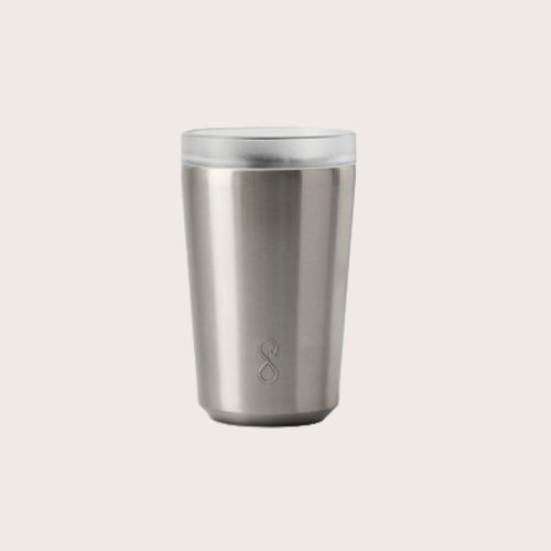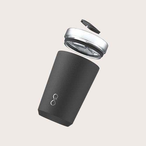 El vaso «Ocean Bottle» de 350 ml tiene aislamiento doble para mantener las bebidas calientes durante cuatro horas y frías durante diez. Cabe perfectamente en la mayoría de las cafeteras, así como en la mayoría de los portavasos de los automóviles. Cada taza de viaje es totalmente neutra en carbono y sirve para financiar la recogida de 1000 botellas de plástico para mejorar los medios de vida en las comunidades costeras. El vaso está fabricado con un 90 % de acero inoxidable reciclado y otros materiales reciclados.