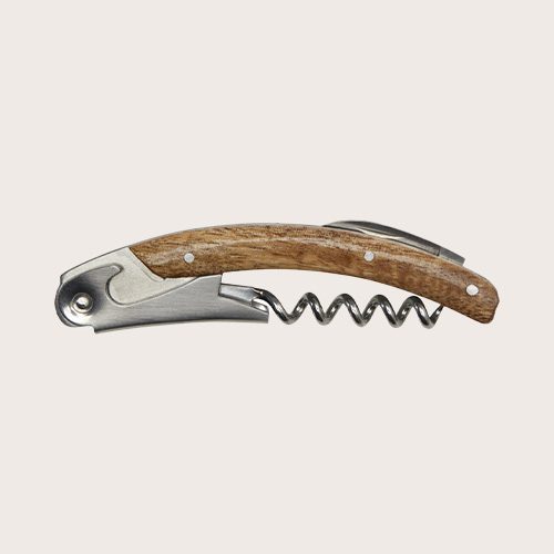 Juego de soporte para botellas de vino de madera de acacia. El juego incluye un abrebotellas de camarero con sacacorchos y un cuchillo de hoja retráctil, sirve también de soporte para botellas de vino. Un regalo perfecto para quienes adoran el vino.