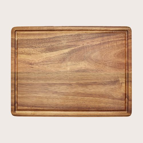 Tabla de cortar de madera de acacia. La tabla también puede utilizarse para servir queso, aperitivos, tapas u otros tentempiés.