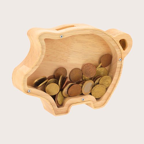 Encantadora hucha con la silueta de un cerdito combinando diseño y funcionalidad, para hacer del ahorro una experiencia alegre, viendo por su ventana de metacrilato como suben los ingresos. Presentado individualmente en caja de diseño kraft.