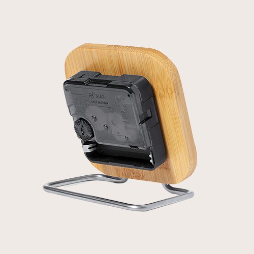 Reloj de mesa fabricado en bambú barnizado y resistente acero inoxidable. Un accesorio decorativo que no podrá faltar en su mesa.