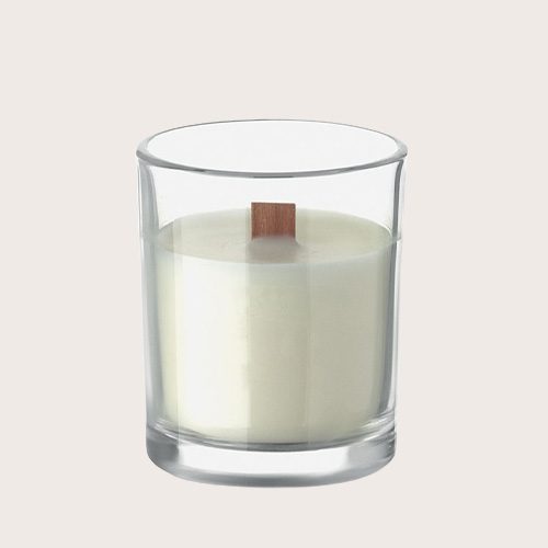 Vela de cera vegetal con fragancia de vainilla 80 gr en vidrio con mecha de madera. Tiempo de combustión 14 horas