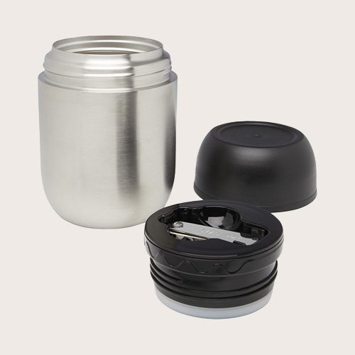 La fiambrera de doble pared está fabricada con acero inoxidable reciclado, por lo que es una opción más sostenible en comparación con las fiambreras desechables de plástico. Cada fiambrera se presenta en una caja de papel kraft reciclado. Este artículo no es apto para lavavajillas o microondas.