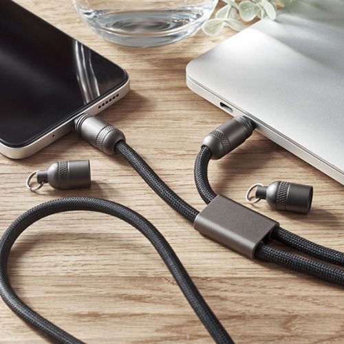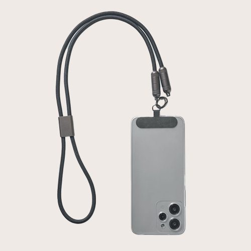 Lanyard cuelga móvil con cable de carga y transferencia de datos de 60 W tipo C a tipo C en RPET.