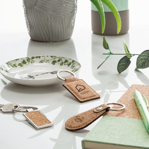 Llavero de corcho. Como el producto está fabricado con materiales naturales, el color como el resultado de la impresión pueden variar entre unos y otros productos.