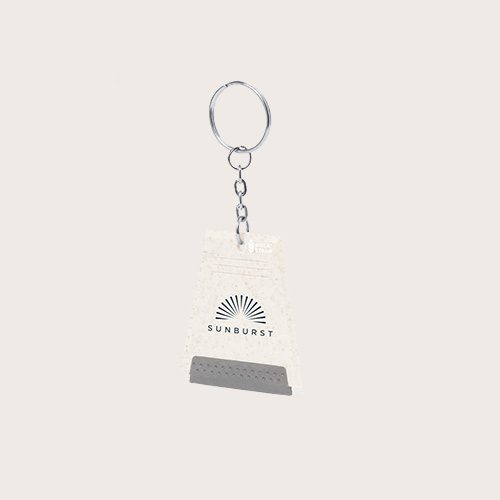 Llavero rascador de hielo fabricado en caña de trigo. Equipado con dientes de sierra para abordar el hielo más resistente y accesorio limpiador. Logotipo caña de trigo en la esquina superior.