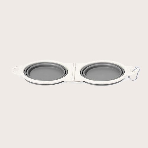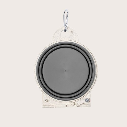 Bowl plegable para mascotas fabricado en caña de trigo. De diseño compacto, con dos compartimentos y perfecto para usar en cualquier sitio. Incluye práctico mosquetón de transporte de fácil enganche.