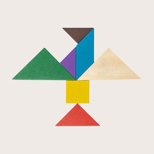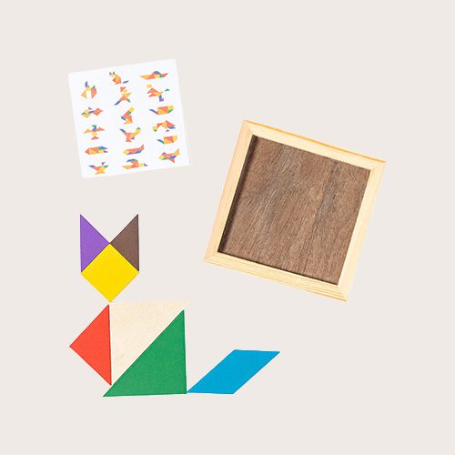 Puzzle de madera con piezas multicolor para despertar el ingenio y habilidad de los más pequeños.