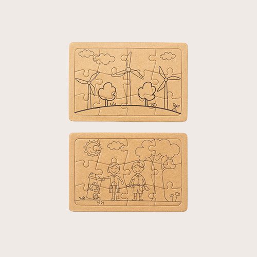 Set de puzzles fabricados en cartón reciclado. Incluye 2 puzzles de 12 piezas cada uno. Set presentado en caja individual de diseño kraft.