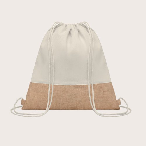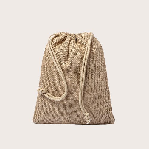 Bolsa resistente de yute de 260 g/m², con elegante cierre de cordón y acabado cosido.