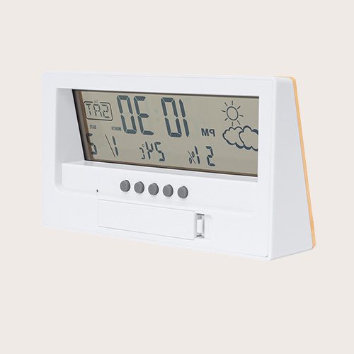 Estación meteorológica con frontal en bambú. Con sensor de temperatura y humedad. Función calendario y alarma. Alimentación a pila (1xAAA no incluida) y presentado en atractiva caja de diseño kraft. Disponible manual de instrucciones en español e inglés.
