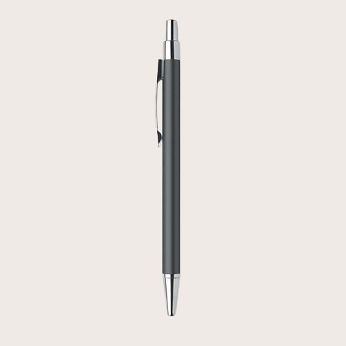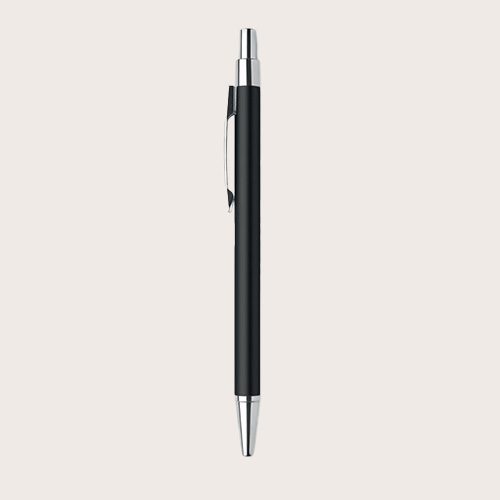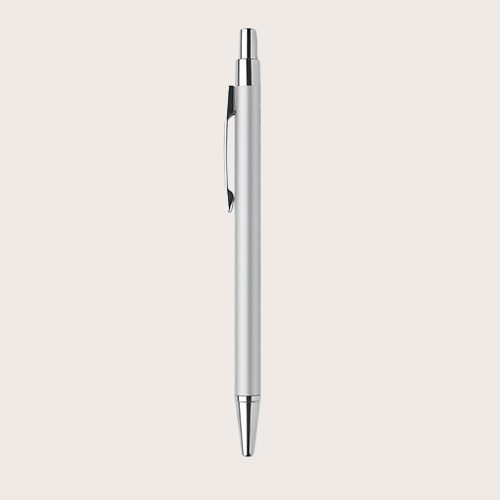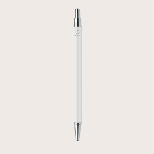 Bolígrafo con pulsador de aluminio reciclado. Tinta azul. Un clásico de la oficina con un toque sostenible. El aspecto de aluminio le da a este bolígrafo un aspecto y una sensación de mayor calidad.