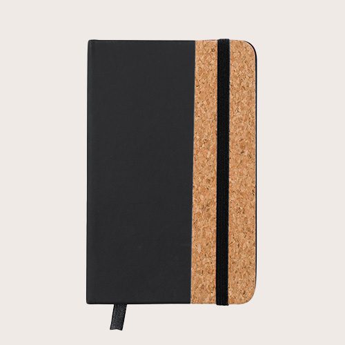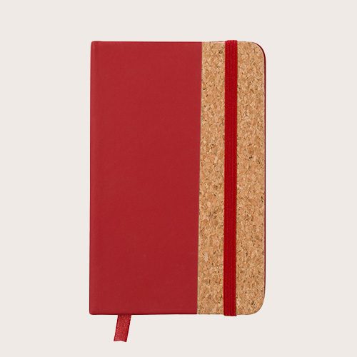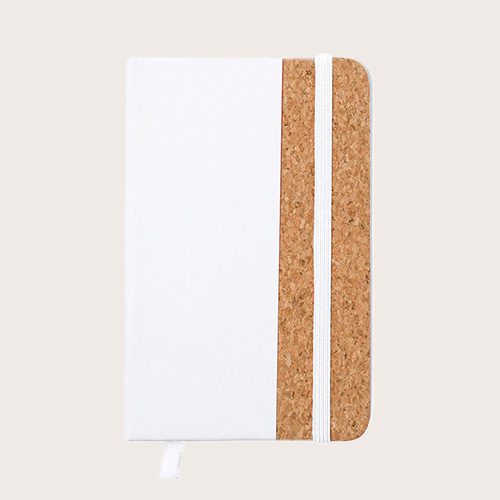 Bloc de notas con tapas rígidas elaboradas con suave corcho. Incluye 80 hojas lisas con elástico de sujeción y marcapáginas de tela a juego. Disponible en amplia gama de colores, con tacto exterior en combinación de corcho natural y polipiel. Presentado en bolsa individual.