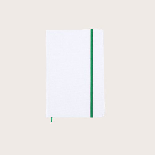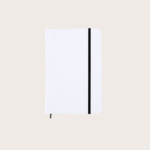 Bloc de notas con tapas rígidas elaboradas con RPET 600D. Con portada y contraportada en blanco, de 100 páginas en lisas, con banda elástica y marcapáginas en variados y vivos colores. Especialmente diseñado para marcaje a todo en sublimación. Con logotipo RPET en contraportada.