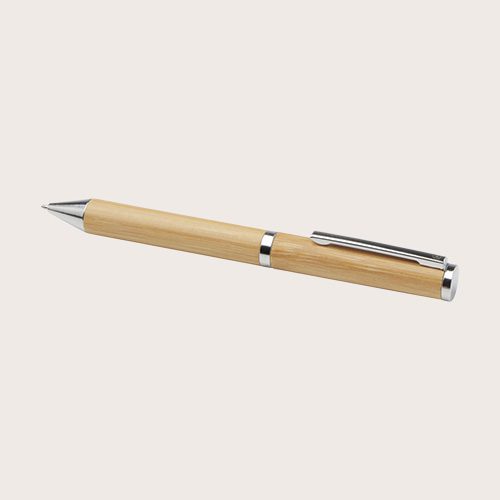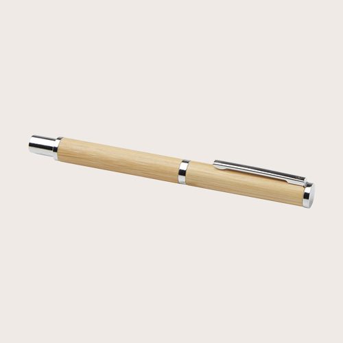 Set de regalo de bolígrafo y roller con cuerpo de bambú. El bambú es un recurso renovable y una opción más sostenible para la fabricación de bolígrafos. Otros componentes de este juego de bolígrafos están fabricados en cobre reciclado con un acabado cromado brillante. Reciclar cobre ayuda a reducir la necesidad de extraer y refinar nuevas materias primas, lo que preserva los recursos naturales. Al elegir un juego de bolígrafos con cuerpo de bambú y cobre reciclado, estarás contribuyendo a unas prácticas de suministro y reciclaje más sostenibles. Así podrás disfrutar de unos artículos de escritura elegantes y respetuosos con el medio ambiente. Se entrega en una caja de papel kraft con una cinta de seda amarilla.