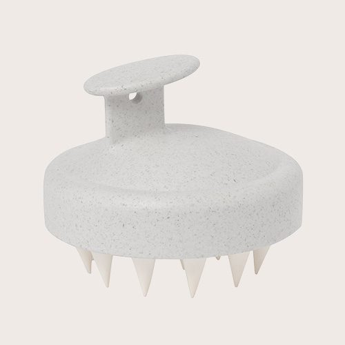 Cepillo masajeador para cuero cabelludo fabricado en caña de trigo. Eficiente emulsionador de champú para masajear placenteramente el cabello estimulando los capilares optimizando la limpieza con sus suaves púas en suave silicona.