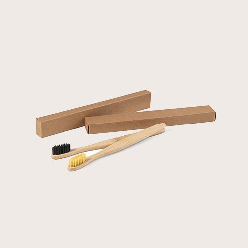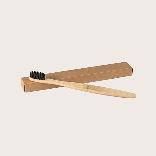 Cepillo de dientes con cuerpo de bambú y cerdas de nylon. servido en caja de papel kraft Como el producto está fabricado con materiales naturales, el color como el resultado de la impresión pueden variar entre unos y otros productos.