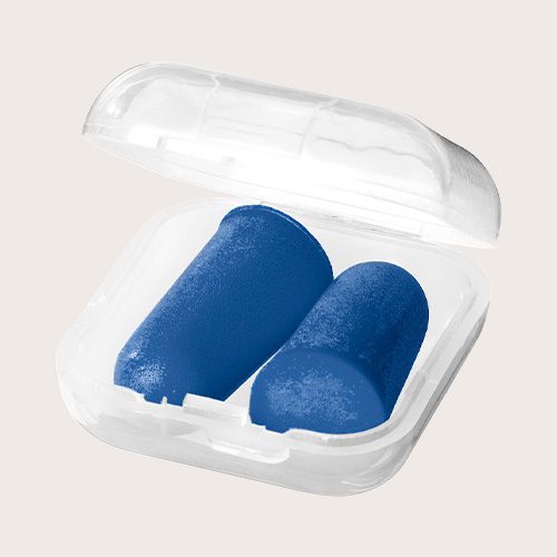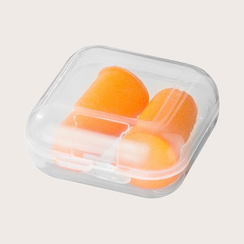 Tapones para los oídos con estuche de viaje con cierre de presión. Espuma de plástico de poliuretano, Plástico PP.