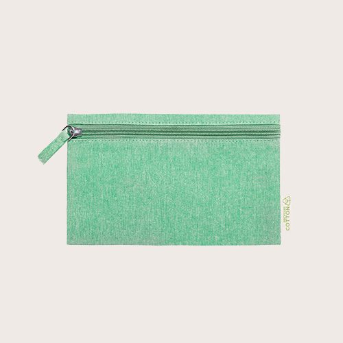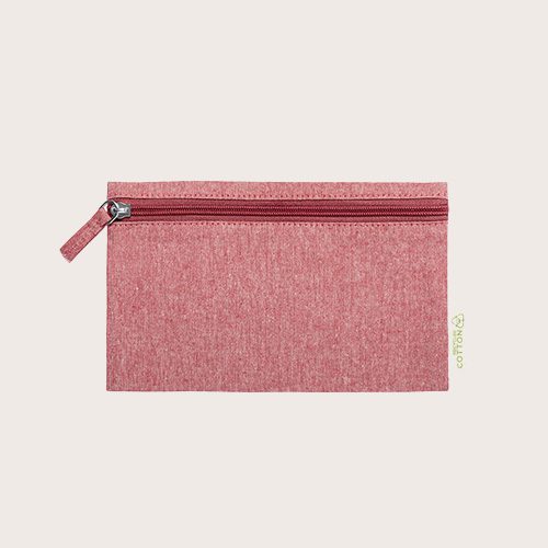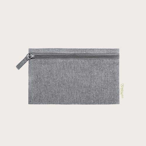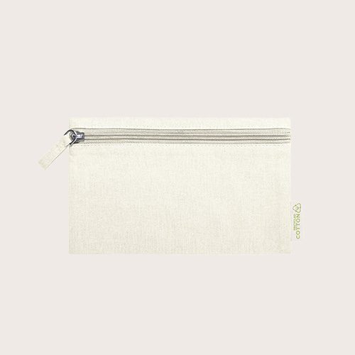 Neceser elaborado en algodón reciclado. Compartimento principal de cierre de cremallera y tirador juego, con distintivo algodón reciclado en etiqueta.
