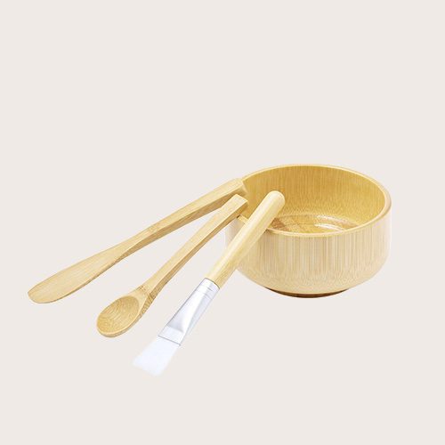 Set de mascarilla fabricado en bambú, ideal para una correcta aplicación de la mascarilla facial. Compuesto por 4 piezas: cuenco de elegante diseño, cuchara, paleta y brocha de suaves cerdas. Fácil de limpiar.