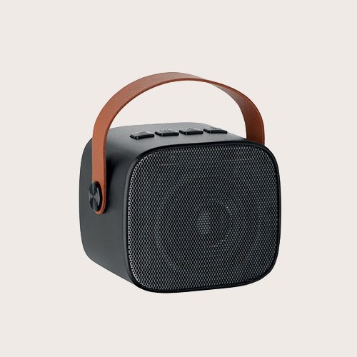 Altavoz inalámbrico 5.0 en ABS reciclado con asa de PU. incluye 1 batería recargable Li-ION de 500 mAh. Incluye un puerto para tarjetas SD y un cable AUX/USB.