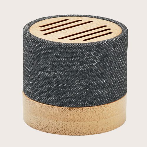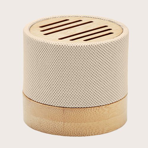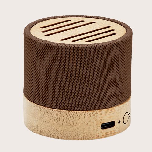Altavoz inalámbrico 5.0 con carcasa de RPET y bambú en parte superior. El bambú es material natural, el color del articulo puede variar.