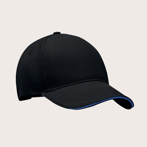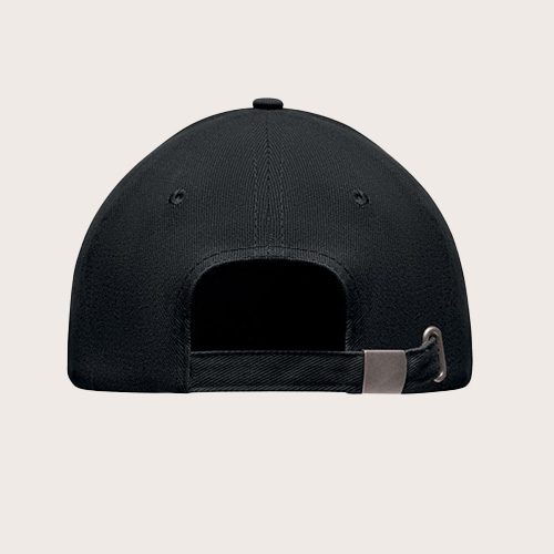 Gorra de béisbol de 5 paneles de sarga gruesa de algodón de 260 g/m² con hebilla de acero plateada.