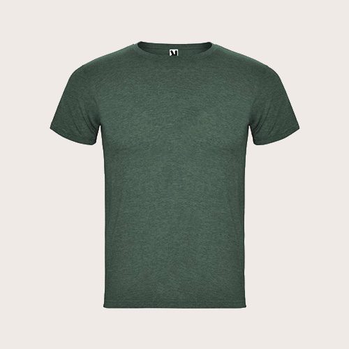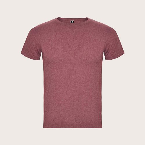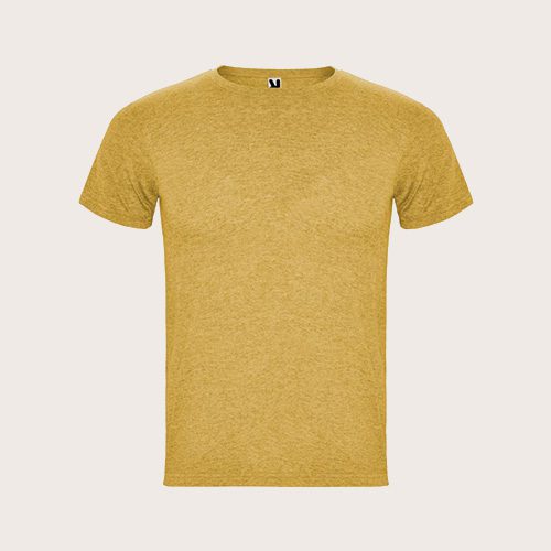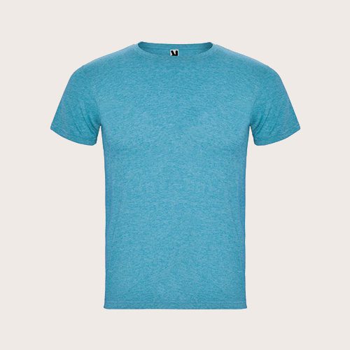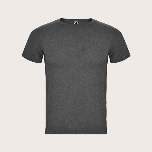 Camiseta de manga corta con efecto jaspeado. Cuello redondo de canalé 1 × 1 con costuras interiores cubiertas reforzadas. Tejido tubular. Etiqueta extraíble. Punto de jersey sencillo 65% Poliéster, 35% Algodón, 150 g/m2.