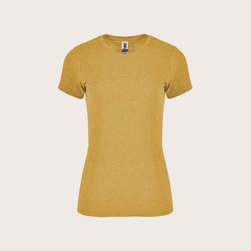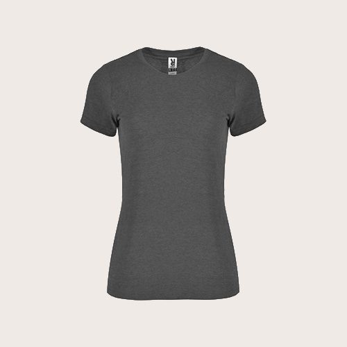 Camiseta de manga corta con efecto jaspeado. Diseño ajustado. Cuello redondo de canalé 1 × 1 con costuras interiores cubiertas reforzadas. Tejido tubular. Etiqueta extraíble. Punto de jersey sencillo 65% Poliéster, 35% Algodón, 150 g/m2.