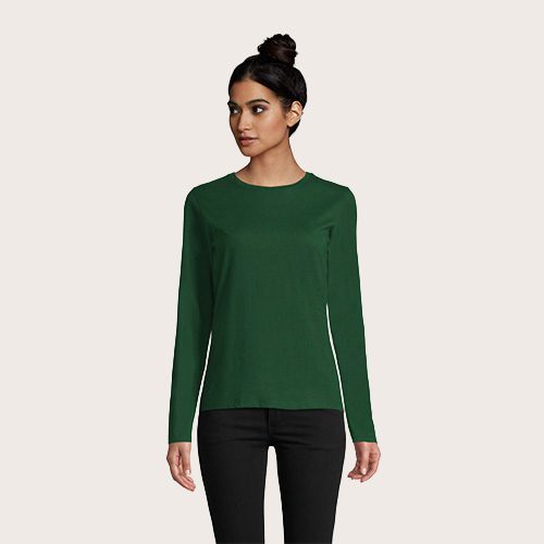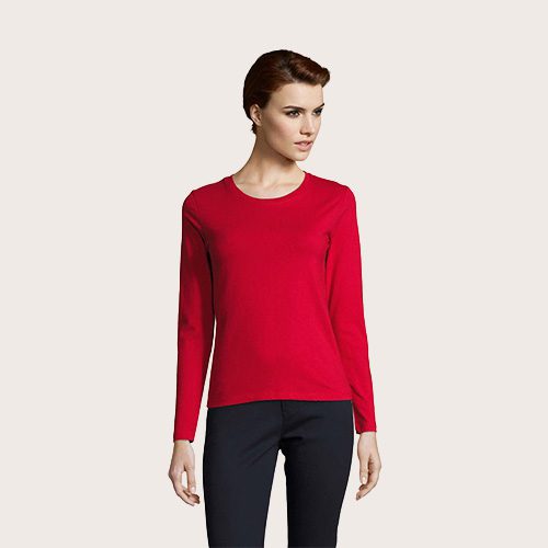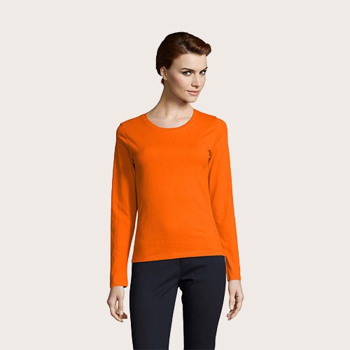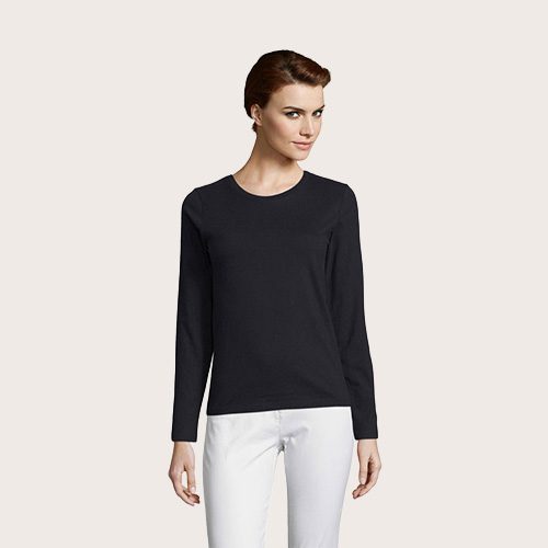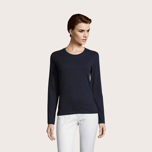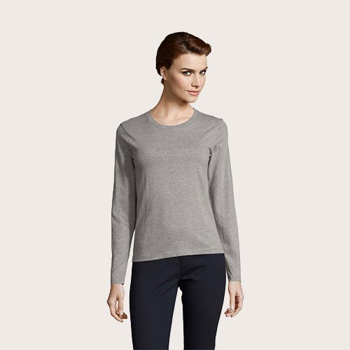 Camiseta manga larga 100% algodón semi-peinado Ringspun, Cuello redondo acanalado con elastano, manga larga, cortado y cosido, corte ajustado, tapacosturas en el interior del cuello.