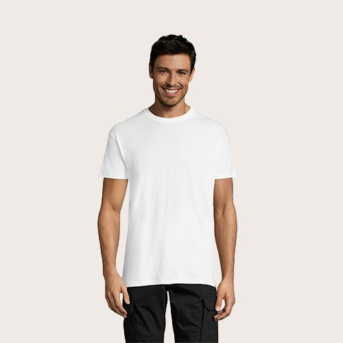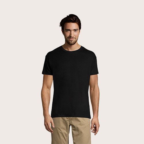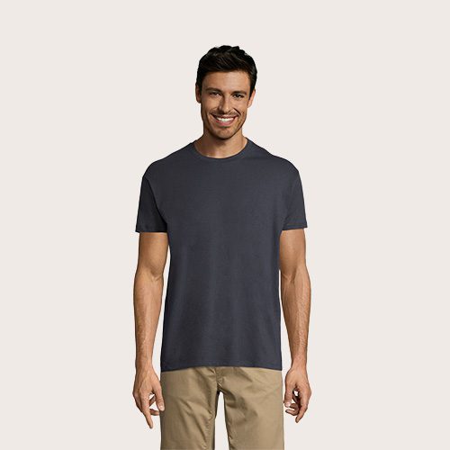 Camiseta unisex cuello redondo, 100% algodón semi-peinado ringspun, jersey 150gr, corte moderno cuello redondo acanalado cinta manga corta tubular. Pueden producirse ligeras variaciones de color de una producción a otra. Sobre la correspondencia de tallas, consulte la tabla de tallas en la sección de documentación del producto.