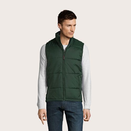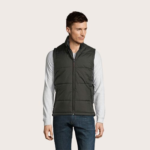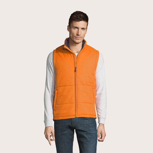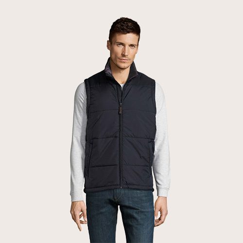 Chaleco unisex acolchado, 100% poliamida, forro y relleno 100% poliéster, revestimiento de poliamida 210T, abertura con cremallera, 2 bolsillos laterales con cremallera.